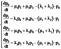 Аналогично формируются дифференциальные уравнения для вероятностей остальных состояний: