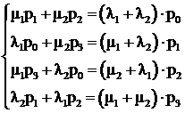 Эту систему можно составить по следующему правилу: для каждого состояния сумма членов, соответствующих входящим стрелкам, равна сумме членов, соответствующих выходящим.