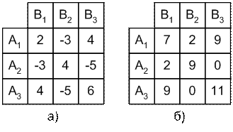 сделаем их неотрицательными (рис. 7.4, б). При этом цена игры возрастет на 5, а решение не изменится. Обозначим новую цену игры