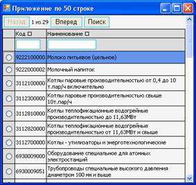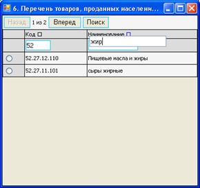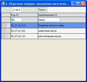 · Поиск по всем значениям справочника. Для того чтобы им воспользоваться, надо ввести образец для поиска в пустые поля в первой строке списка и нажать кнопку «Поиск». В результате в список будут отобраны все записи из справочника, удовлетворяющие введенному критерию. Пример на нижеследующем рисунке.
