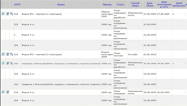 6) Найдите в списке нужную запись. В зависимости от статуса отчета выполните следующие возможные действия: