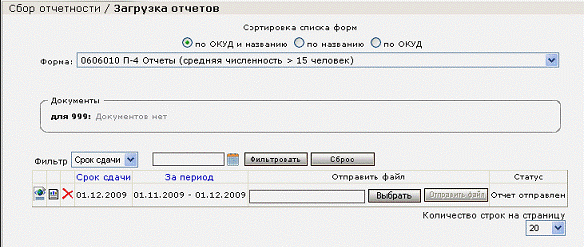 2) Найти в списке отправленных отчетов запись о нужном отчете и просмотреть его статус.