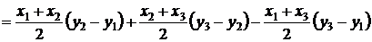 Расчетная формула для определения площади многоугольника (в простейшем случае треугольника – рис. 13):