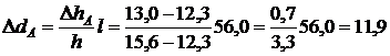 Пример 1. Пусть отметки точек A и В будут: HA = 12,3 м; HB = 15,6 м. Расстояние между точками на плане l = 56,0 м. Принятая высота сечения рельефа hc = 1 м (рис. 27).