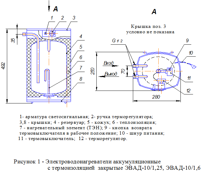 Электроводонагреватели аккумуляционные с термоизоляцией закрытые ЭВАД-10/1,25, ЭВАД-10/1,6 (далее – водонагреватели) предназначены для нагрева воды в быту ниже точки кипения и автоматического поддержания ее температуры в течение всего времени включения водонагревателя в электросеть.