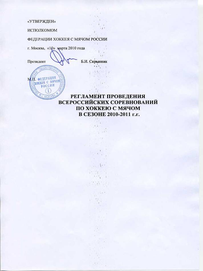 Чемпионата и Кубка России по хоккею с мячом принадлежат клубам в соответствии с настоящим Регламентом.