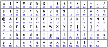 В качестве международного стандарта принята кодовая таблица ASCII (American Standard Code for Information Interchange), кодирующая первую половину символов с числовыми кодами от 0 до 127 (коды от 0 до 32 отведены не символам, а функциональным клавишам).