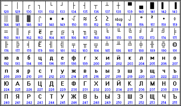 Кодовые таблицы для кодировки русских букв: