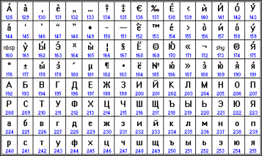 Наиболее распространенной в настоящее время является кодировка Microsoft Windows, обозначаемая сокращением CP1251 ("CP" означает "Code Page", "кодовая страница").