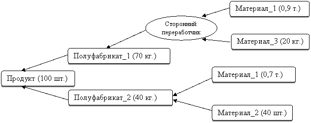 3. На 01.01.2009 утверждена следующая схема производства (на схеме указан расход сырья и полуфабрикатов):