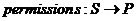 - для каждого сеанса s эта функция задает набор доступных в нем полномочий, который определяется как совокупность полномочий всех ролей, задействованных в этом сеансе.