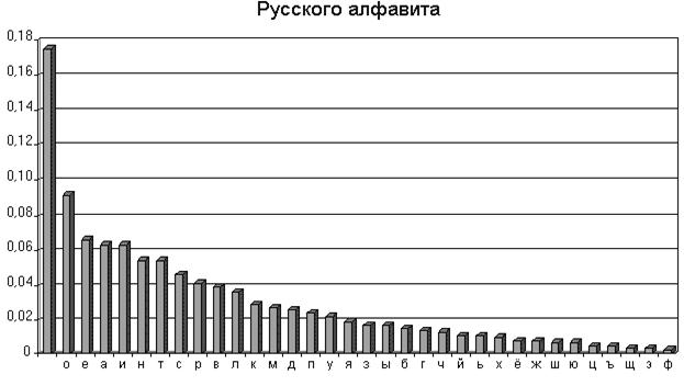 Таким образом, путем анализа частотности символов шифротекста и сравнения их с частотностями букв русского (английского) текста можно составить таблицу замен и дешифровать шифротекст.