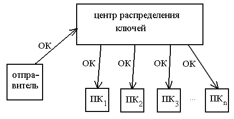 Рис. 4.6. Схема распределения ОК с использованием центра распределения ключей