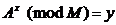 является несложной задачей для ЭВМ. Однако решение обратной задачи – нахождения степени x по известным у,A,M такой, что