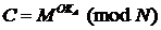 В криптосистеме RSA открытый ключ ОК, секретный ключ СК, исходное сообщение М и шифротекст С являются целыми числами от 0 до N-1, где N – модуль.
