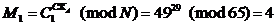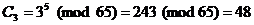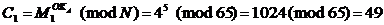 3. B отправляет для A криптограмму {C1, C2, C3 }= {49, 1, 48}.