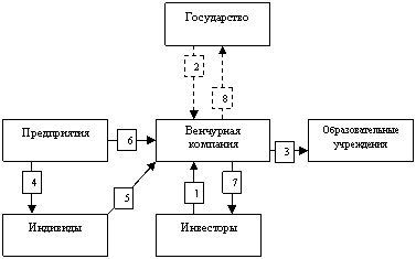 Рисунок 5. Финансовые потоки между субъектами венчурного образования.