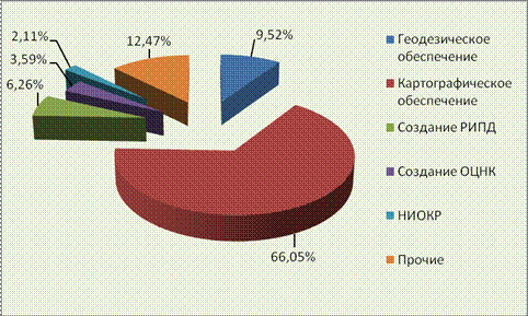 Рис. 7. Структура выполняемых видов работ отрасли геодезии и картографии для федеральных нужд
