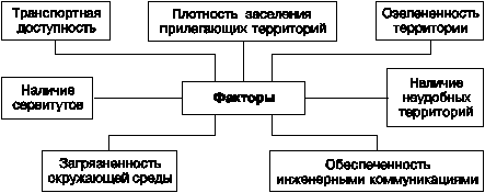 Действие рассмотренных факторов зависит от назначения земельного участка, что сказывается на уровне цены участка и размере арендной платы. Например, для земли, используемой для объектов торговли, культуры, банков, гостиниц, важнейшими факторами будут близость к центру города, плотность населения и транспортная доступность. Для земельных участков, предназначенных для жилой застройки, важны доступность транспорта, экологическая безопасность, близость к рекреационным зонам; для объектов промышленности и коммунально— складских объектов важными факторами будут инженерно—транспортная обеспеченность и плотность прирельсовой территории.