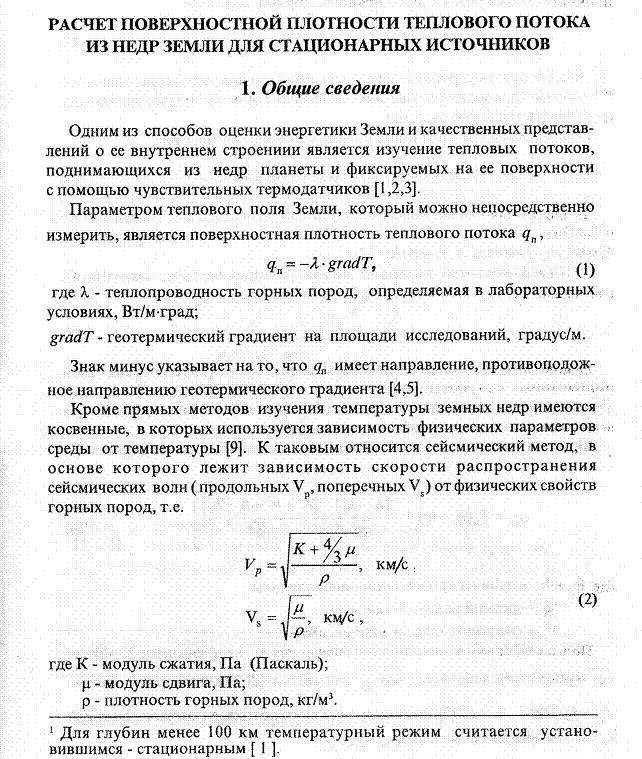 1. Ознакомиться с методикой расчета теплового потока из недр Земли для стационарных источников [1, 2].