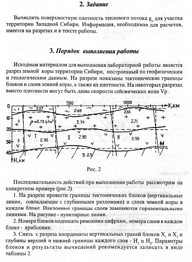 2. Выполнить расчет теплового потока из недр Земли в соответствии с порядком выполнения работы, приведенном в методических указаниях [1].