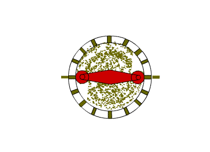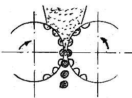 В любом из них сырье захватывается шнеком, перемешивается, нагнетается к матрице и продавливается через отверстия соответствующего диаметра. Выходящие из матрицы гранулы срезаются вращающимися ножами. В конических шнеках масса предварительно подпрессовывается. Матрицы могут быть плоские, сферические и сегментные. Шнековые прессы применяют главным образом для гранулирования влажного исходного сырья (влажный способ). Прессы с плоской горизонтальной вращающейся матрицей, через отверстия которой материал продавливается прессующими вальцами и формируется в гранулы. Вальцы могут быть коническими и цилиндрическими с активным и пассивным приводом. В прессах с цилиндрическими вальцами из-за разности окружных скоростей неравномерно изнашиваются матрицы и вальцы.