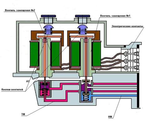 В вентильной части установлены два вентиля замещения №1 и №2.