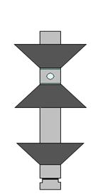 . - Стержень с 3-я манжетами. С его участием происходит процесс дополнительной разрядки ТМ в КДР. Установлен в специальном захвате расположенном в верхней части зажима МД. Верхний торец стержня воздействует на режимный шток снизу. Стержень представляет собой конструкцию, состоящую и трех отдельных элементов, на каждом из которых расположена уплотнительная манжета воротникового типа. Элементы соединены между собой шплинтами. Манжеты воротникового типа, не пропускают воздух только в одном направлении. Верхняя манжета отсекает камеру под поршеньком от атмосферы и КДР. Средняя и нижняя манжеты при нейтральном положении отсекают ТМ от КДР, которая сообщается с атмосферой. При торможении (кроме ВЗ№1) нижняя и средняя манжеты сообщают ТМ с КДР. Нижняя манжета необходима для обеспечения четкой работ ВЗ№2. Воротники верхней и нижней манжет направлены вверх, а средней манжеты вниз.