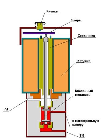 Пневмореле в перекрыше. Внутреннее и внешнее седла КГР закрыты..