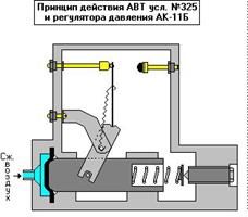- резиновая диафрагма. Установлена между стаканом и корпусом АВУ-045. Камера под диафрагмой сообщается с тормозной магистралью, которая подведена к АВУ-045 через штуцер и боковой наклонный канал.