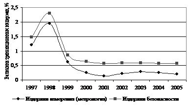 Используя рис. 2 и учитывая долю издержек на метрологию примерно в 40% от издержек измерения в целом, можно определить величину соответствующих трансакционных издержек. В 1998 г. они составили около 5, а в наши дни – 0,2%.