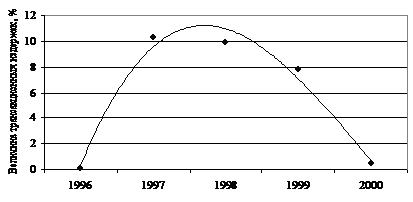 Как видно из рис. 3, наблюдается хорошо выраженный максимум трансакционных издержек в 1997–1999 гг. Соответственно величину трансакционных издержек за счет институциональной трансформации можно оценить на уровне 10%. После 2000 г. практика взаимозачетов по налогам полностью прекратилась.