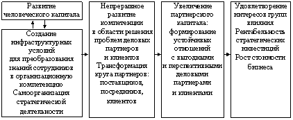 Результаты наших исследований[59] позволяют предположить, что уровень развития человеческого капитала российских предприятий довольно высок, а основная проблема кроется в том, что на предприятиях недостаточно эффективно работает механизм трансформации человеческого капитала в компетенции организации и далее – в устойчивые отношения с эффективными партнерами.