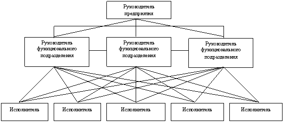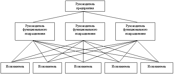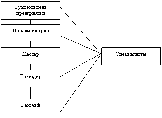 Как видим в данной схеме, специалисты в отдельную группу не выделены. Специалистами являются руководители функциональных подразделений, которые непосредственно отдают распоряжения исполнителям или руководителям нижестоящих уровней.