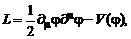 . Затем происходит скатывание поля к минимуму энергии. Запишем лагранжиан инфлатонного поля в виде: