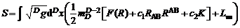 Рассмотрим теперь ситуацию, возникающую при введении дополнительных измерений. Действие в D-мерном пространстве-времени имеет вид: