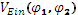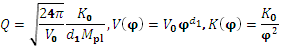 ). После редукции к четырем измерениям удается получить следующую зависимость потенциальной энергии инфлатонного поля от величин полей φ1 и φ2 (рассматриваются два фактор-пространства с размерностями d1 и d2 соответственно):