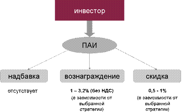 Что платит инвестор, приходя в управляющую компанию? Существует так называемые надбавки, вознаграждения и скидки, которые берет компания за управление.