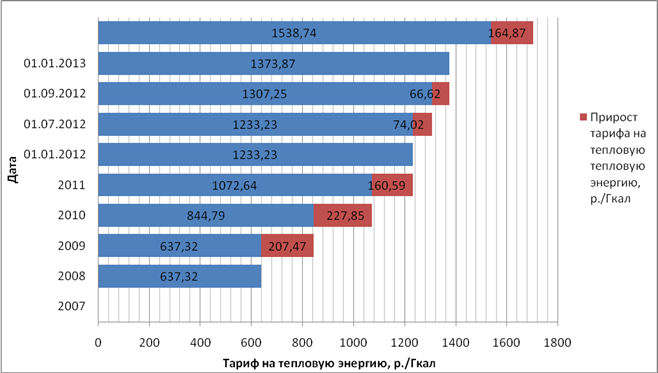 Рост тарифа на тепловую энергию, % | 13,7 | 32,6 | 27,0 | 15,0 | 11,1 | 10,7 |