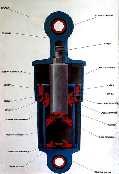 Гаситель колебаний является демпфером телескопического типа (то есть меняющего свою длину в зависимости от хода сжатия или растяжения гасителя), действующего по принципу дросселирования, то есть перетекания рабочей жидкости из одной полости в другую через калиброванные каналы с сопротивлением и определенным давлением.