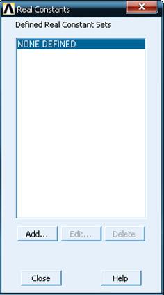 7. Main Menu > Preprocessor > Real Constants > Add/Edit/Delete