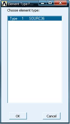 На данном этапе достаточно добавить следующие типы конечных элементов: SOLID96 или SOLID98, а также SOURC36 (методика выбора и добавления конечного элемента в среду ANSYS подробно описана в п. 15 раздела 3.2.6).