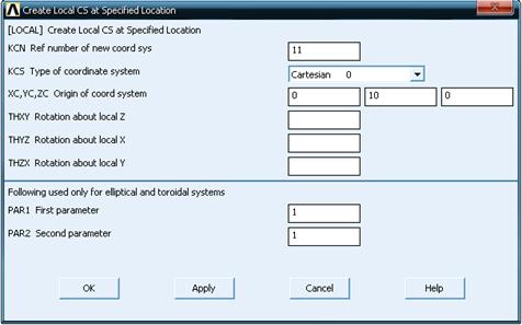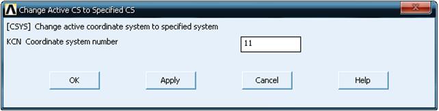 Активизировать систему координат можно в любой момент работы с программой ANSYS. Такая система координат останется активной до тех пор, пока не будет переопределена явным образом.