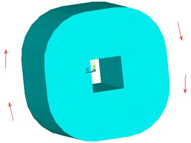 Особенностью SOURC36 является то, что с его помощью не описывается трехмерное тело – катушка (полый цилиндр), а сразу моделируется активный элемент, состоящий из конечных элементов. Узлы этого элемента не должны быть присоединены к узлам любого другого элемента.