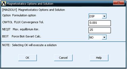 В появившемся окне Magnetostatics Option and Solution из ниспадающего списка строки Formulation options следует выбрать метод расчета DSP (рисунок 3.90).