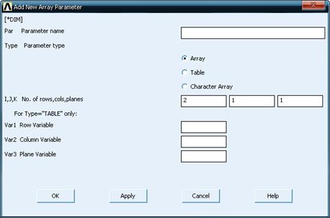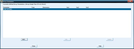 13. Utility Menu > Parameters > Array Parameters > Define/Edit