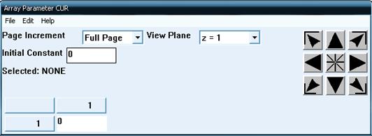 Окно Add New Array Parameters позволяет указать имя параметра – поле Parameter name, выбрать тип создаваемого параметра Parameter type: Array (матрица), Table (таблица), Character Array (характерная матрица). В ячейки строки I,J,K No, of rows, cols, plane вводится размерность трехмерной матрицы. Имя создаваемой матрицы cur; тип параметра – Array; размерность 1, 1, 1. После подтверждения введенных значений в окне Array Parameters появится строка с характерным именем, типом и размерностью матрицы.