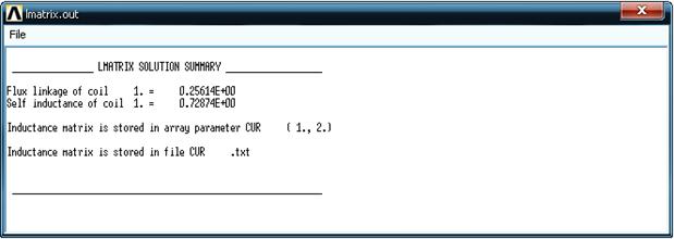 14. Main Menu > Solution > Solv > Electromagnet > Static Analysis > Induct Matrix