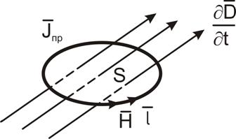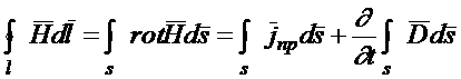 Первое уравнение Максвелла в интегральной форме является обобщением закона полного тока (закона Ампера) связывающего циркуляцию вектора напряженности магнитного поля
