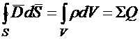 Уравнение (1.25) читается так: поток вектора электрической индукции через замкнутую поверхность равен суммарному электрическому заряду внутри этой поверхности.